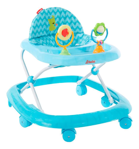 La andadera es ajustable a la estatura del bebé con 4 diferentes ajustes. Cuenta con dos sonajas que ayudan a la coordinación motora de tu bebé, un asiento acolchonado que protege la espalda de tu bebé.