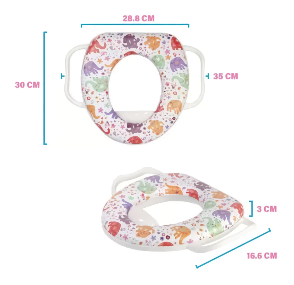 Este asiento entrenador es de tamaño universal apto para todo tipo de Inodoro en forma O, forma V, forma U y forma cuadrada. Sólo requiere colocar este accesorio encima del asiento de inodoro y estará listo para usarse. Y puede colgarlo en cualquier lugar con el gancho (no incluido) después de usarlo. Además, este asiento de apoyo hace que sus niños eviten el contacto directo con la superficie del inodoro y de esta manera aislarlo de las bacterias para garantizar la salud de sus niños. En la parte frontal trae una concha para evitar salpicaduras de orina.