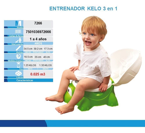 Aprender a ir al baño será más divertido y cómodo con el entrenador Kelo 3 en 1. Con diseño novedoso. Con el baño entrenador para bebé Kelo de Prinsel, tu hijo podrá cruzar una de las etapas más importantes en el crecimiento de los niños, que es aprender a dejar el pañal. Que tu bebé pueda lograr esa independencia será más fácil con este baño entrenador.