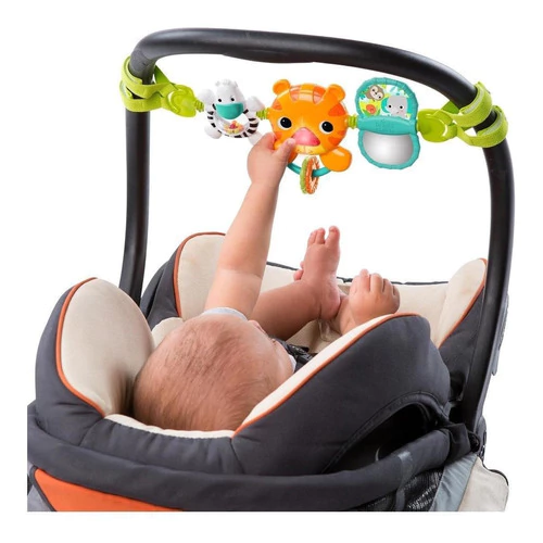 La barra De Juguetes Para Portabebe Bright Starts Musical eleva las risas dondequiera que vaya con la barra de juguetes para portabebés de Bright Starts, que incluye juguetes de actividad surtidos para padres que no paran. Este juguete musical le ayuda a atesorar cada momento con su pequeña bebé, desde mandados hasta recorridos por la ciudad. Los juguetes para tironear y aferrar están diseñados para promover el desarrollo de la motricidad fina, incluso para recién nacidos. Observe a su bebé estirarse hacia lo alto para jugar con su pajarita.
