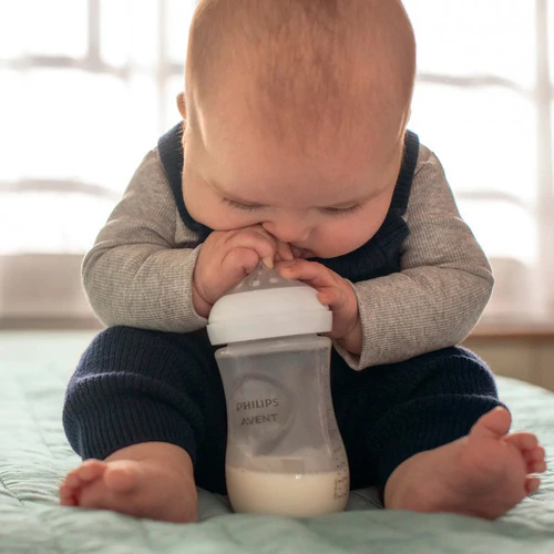 El biberon Avent Natural Response con tetina ultrasuave se asemeja más al pecho y favorece el ritmo natural de succión del bebé, la amplia tetina con la forma del pecho, el diseño en espiral flexible y los cómodos pétalos permiten un enganche natural, facilitan la combinación de la lactancia materna y la alimentación con biberón.