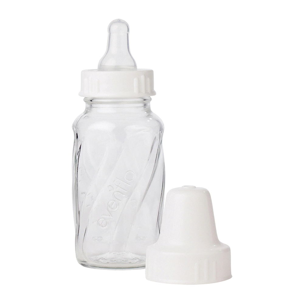 El biberón de vidrio de Evenflo cuenta con mamila estándar de silicón grado alimenticio, con anillos flexibles que se adaptan al paladar del bebé permitiendo un flujo continuo de los líquidos. Además puede ser lavado en lavavajillas o a mano de manera sencilla.