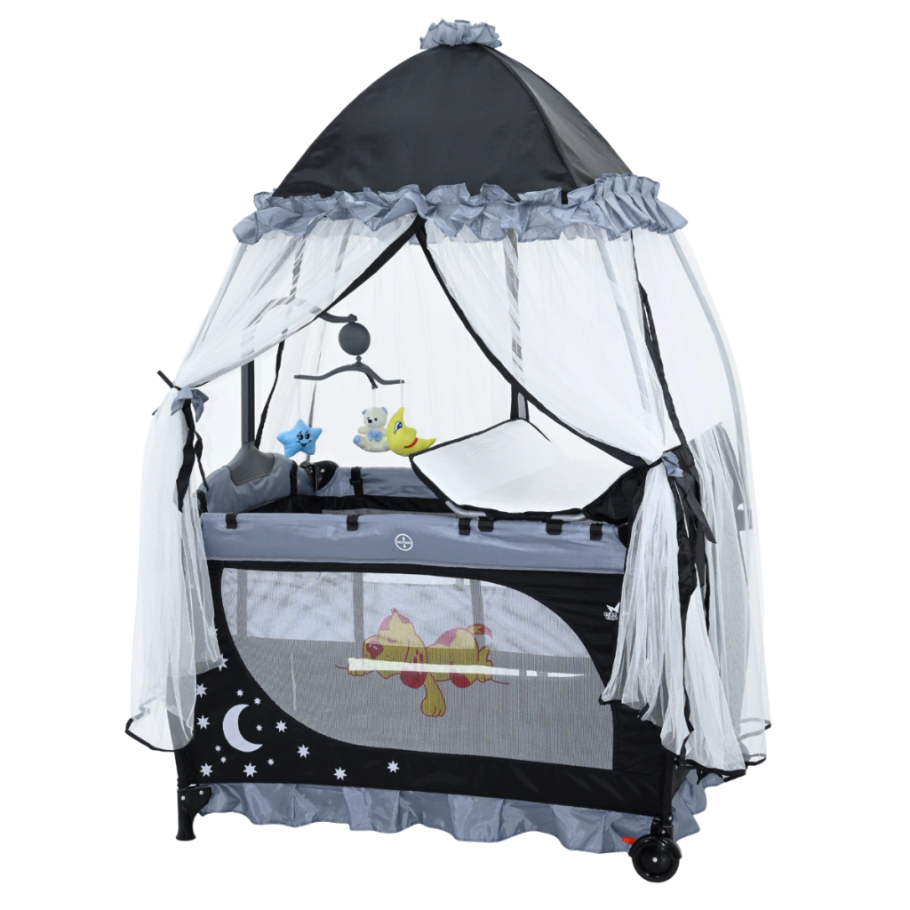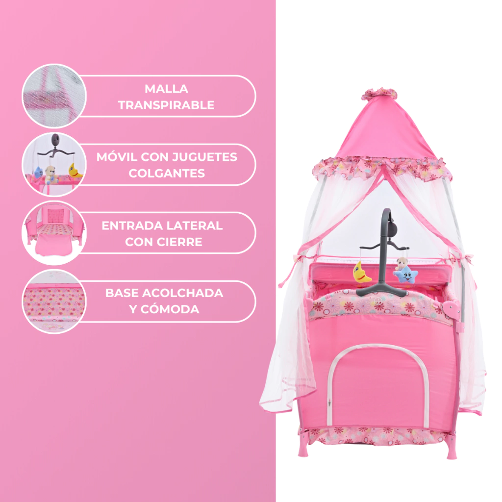 Esta cuna corral para bebé de Starkids Draco es ideal para llevarla de viaje y que tu bebé pueda dormir cómodamente. Cuenta con toldo tipo circo y un velo de lujo, lo que le da un toque muy elegante a esta cuna corral. El bebé podrá pasar horas enteras de diversión gracias a su móvil con juguetes musicales, y al mismo tiempo podrás estar muy cómodo en la base acojinada de esta cuna corral.