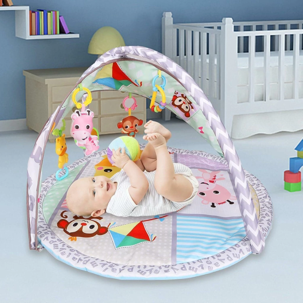 Este gimnasio para bebé con sombrilla es ideal para usar tanto en interiores como al aire libre, especialmente en patios o durante los calurosos días de verano, ya que protege a tu pequeño de la luz solar excesiva. Diseñado para acompañar el crecimiento desde recién nacido hasta niño pequeño, este centro de actividades incluye una suave almohada y 4 adorables juguetes colgantes desmontables que estimulan el juego y el movimiento. Es perfecto para fomentar el desarrollo sensorial y motriz en etapas clave como los 3, 6 y 12 meses, invitando al bebé a levantar la cabeza, girarse, golpear y ponerse de pie. Fabricado con materiales de alta calidad, suaves y seguros para la piel delicada del bebé, este gym bebé es cómodo y confiable. Sin duda, uno de los mejores gimnasios para bebés y tapetes para bebé, pensado para brindar una experiencia divertida, saludable y segura. Si buscas un tapete o gimnasio bebé que combine funcionalidad y diseño, esta es la opción perfecta.