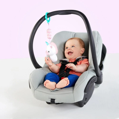 Este juguete musical colgante es ideal para la diversión para tu hijo, ya que siempre podrá aumentar, con los productos de Bright Starts, y en esta ocasión te presenta un juguete musical extra para carriola, portabebé o cualquier barra de juguetes, con diseño de adorables animalitos.