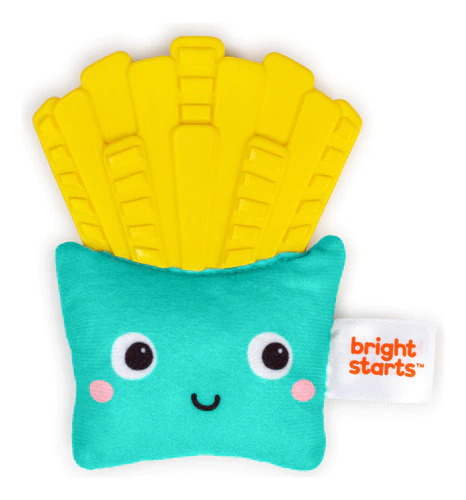 La Mordedera para bebé Bright Starts Side of Smiles Crinkle Teether es una ¡Una ración de patatas fritas! Regala a tu bebé el mordedor que cruje Side of Smiles™ de Bright Starts. Fabricado con materiales que no contienen BPA, este juguete con forma de patatas fritas proporciona múltiples texturas y materiales para aliviar las encías irritadas de tu bebé durante la etapa de dentición. Tu bebé se sentirá atraído por las firmes y tentadoras patatas fritas, que tienen texturas para masajear esos molestos puntos de dentición.