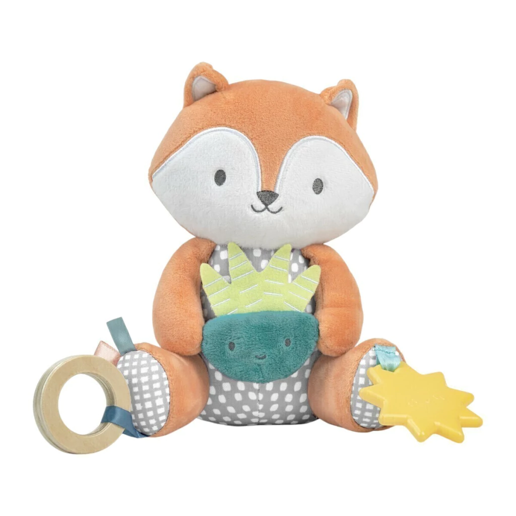 La Mordedera para bebé de Peluche Ingenuity Calm Springs Kitt es el amiguito que todos los padres deben tener, y el nuevo compañero de tu bebé. ¡El adorable peluche del zorrito Kitt calmará y entretendrá a tu bebé cuando salgáis de paseo! Estimula la curiosidad de tu bebé mediante la exploración de diferentes juguetes, texturas y materiales que crujen. Fabricado con una combinación de tejidos afelpados de primera calidad, Kitt es suave para el tacto del bebé y un estímulo para su sentido del tacto. El sol de juguete no contiene BPA, es apto para recién nacidos y calma a tu bebé tanto en casa como fuera.