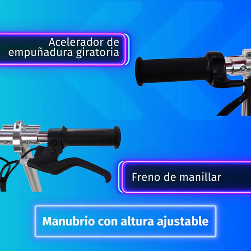 -Modo de funcionamiento: Controlador de potencia del motor por el manillar derecho Acelerador / freno por el manillar izquierdo con freno de recorte trasero