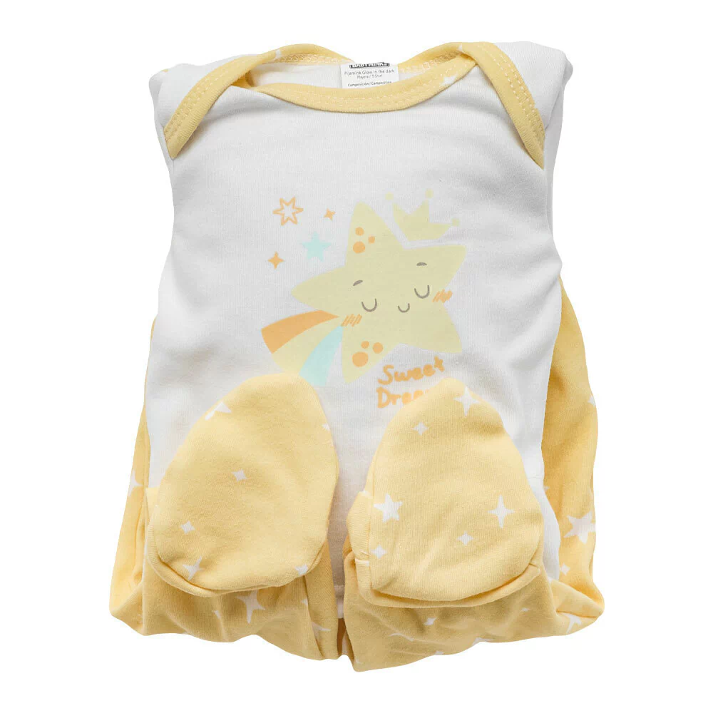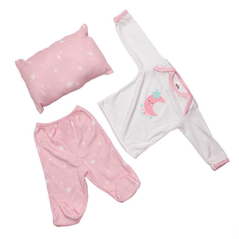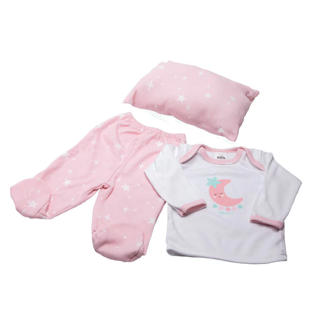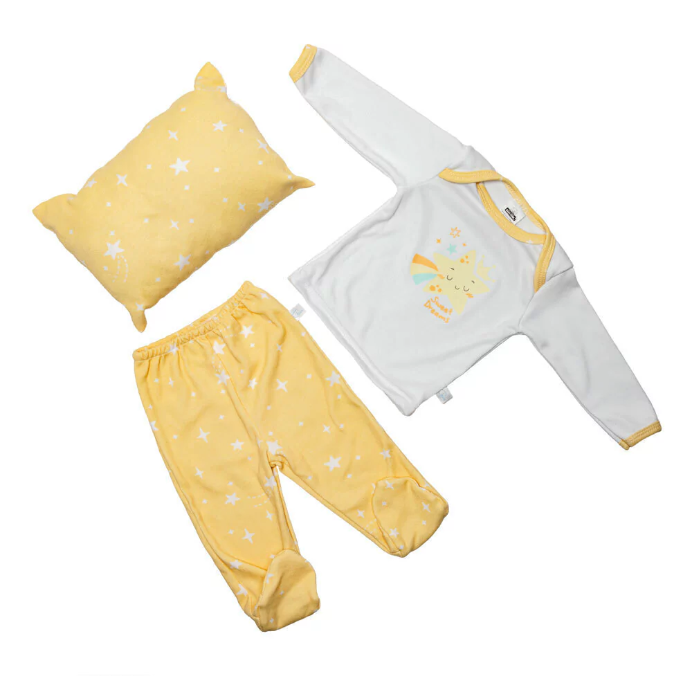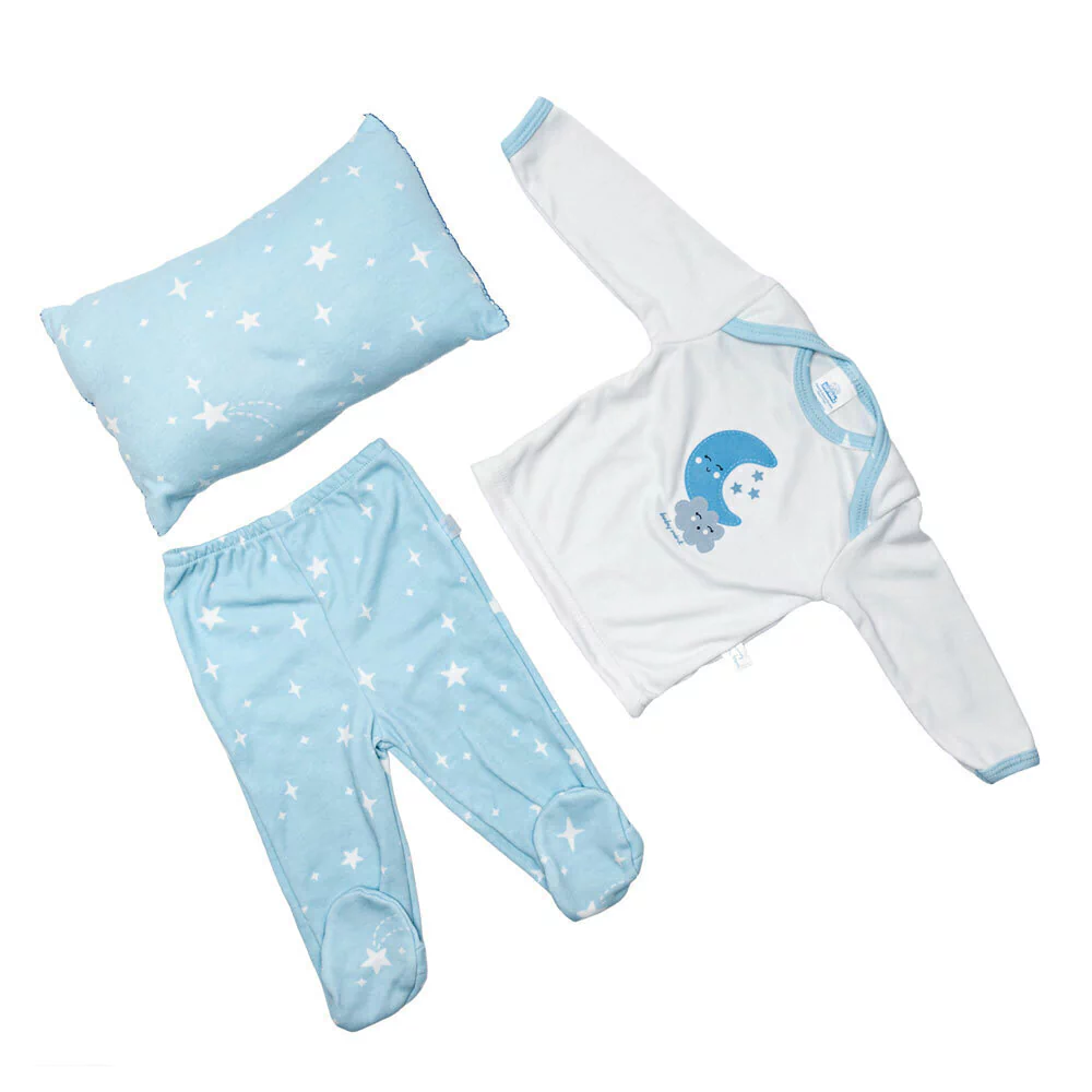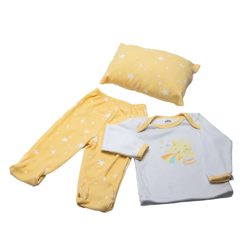 1 camiseta de manga larga, 1 pantalón con pies y 1 almohada