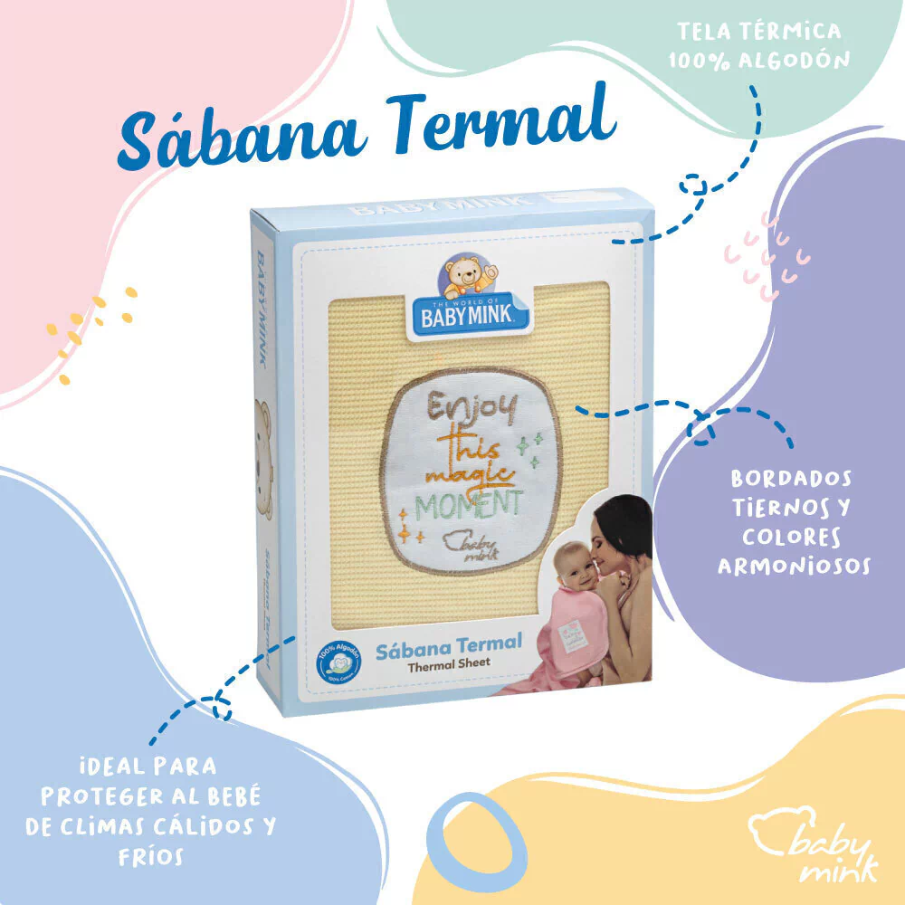 Las Sábana térmica 100% algodón, ideal para cualquier tipo de clima. Ya sea calor o frío, esta sábana se adapta perfectamente a la rutina diaria de los padres gracias a su practicidad y bordado de alta calidad. Su composición 100% algodón y su tela térmica aseguran el máximo confort para tu bebé, brindando una temperatura adecuada en todo momento. Con unas medidas de 100 x 80 cm, es perfecta para su cuna o cama. Es un artículo de uso diario, diseñado para hacer más fácil el día a día de los papás y mamás. ¡La opción ideal entre las sábanas para bebé y sabanitas bebé! Además, Baby Mink garantiza la suavidad y confort que tu pequeño merece.