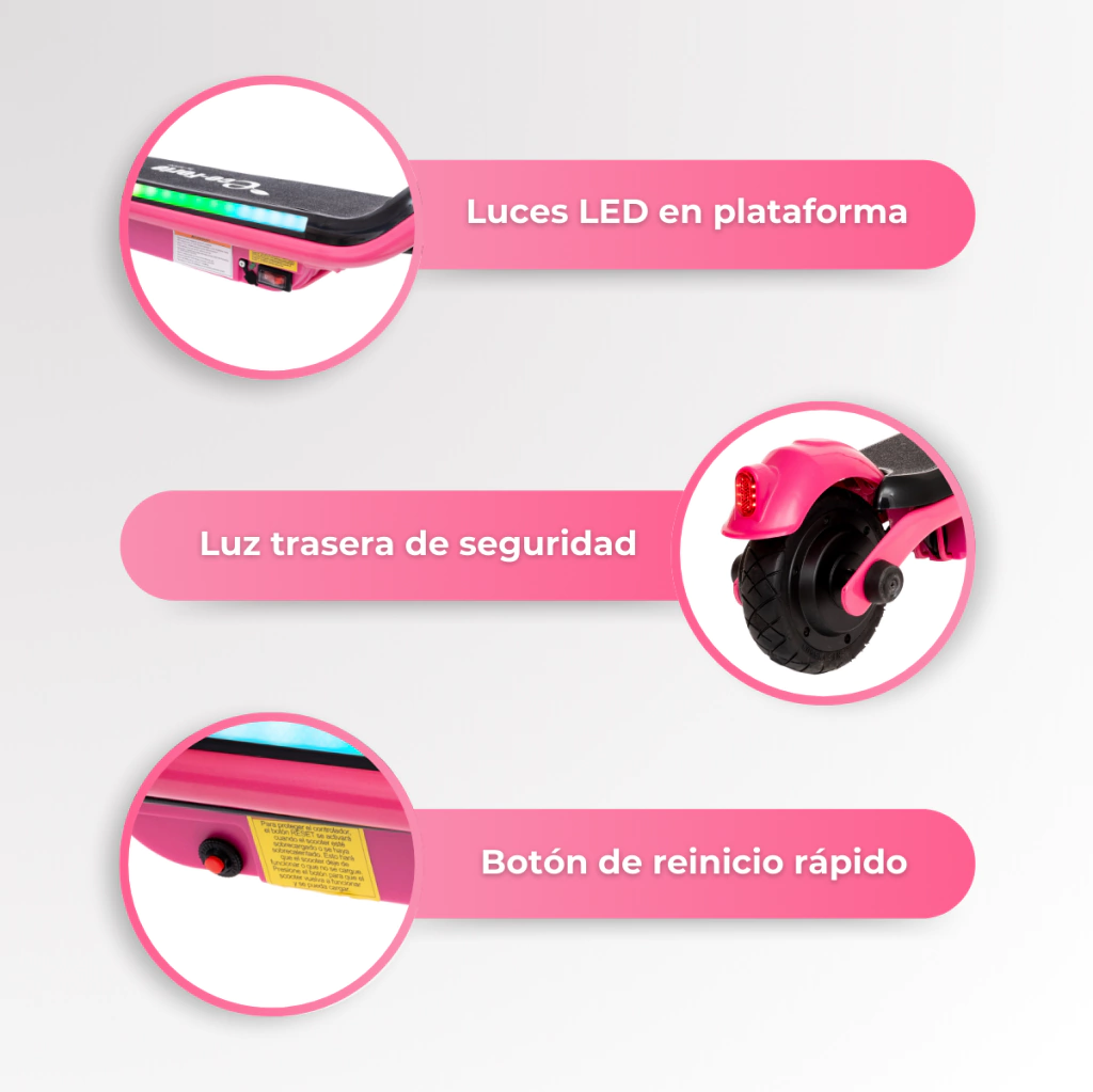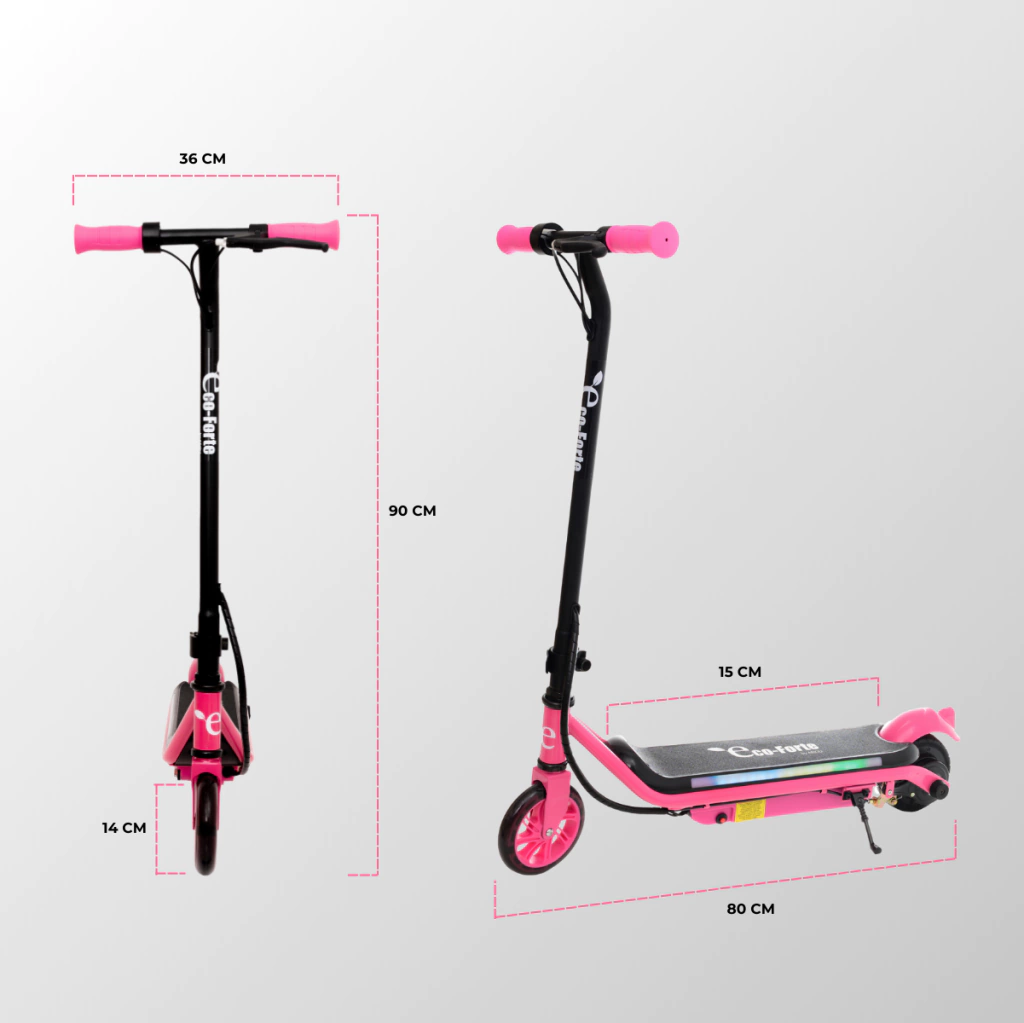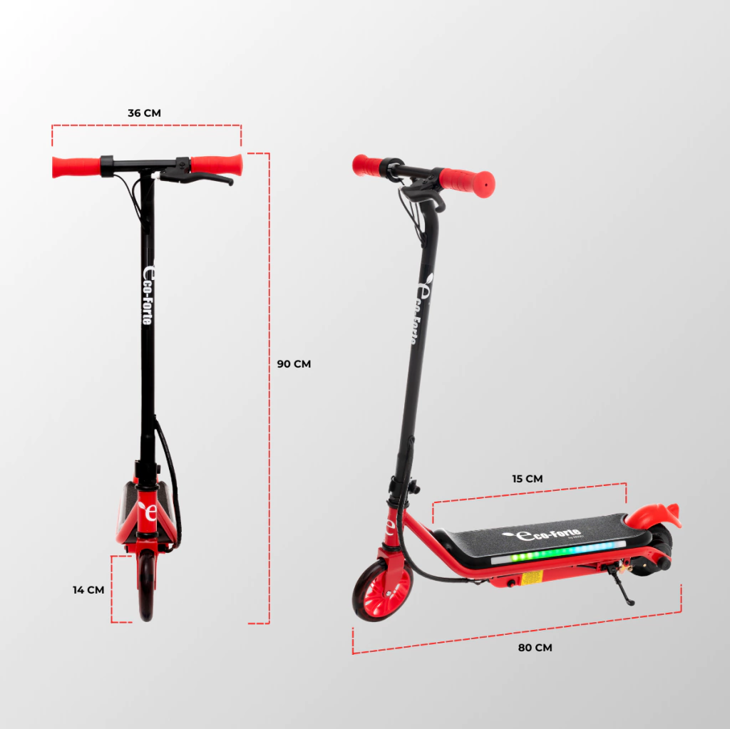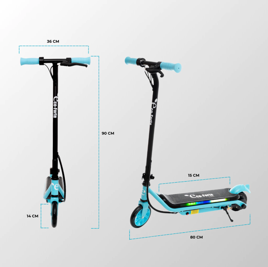 El Patín Eléctrico Eco-Forte SG10 es la opción ideal para niños a partir de 14 años que buscan diversión y movilidad. Este scooter eléctrico soporta hasta 70 kg y cuenta con un diseño moderno que incluye luces LED en la plataforma y luz trasera de seguridad para mayor visibilidad. Su botón de inicio rápido, junto con el botón de reinicio y el switch on/off, facilitan su uso. Además, su sistema de carga es práctico gracias al puerto integrado.