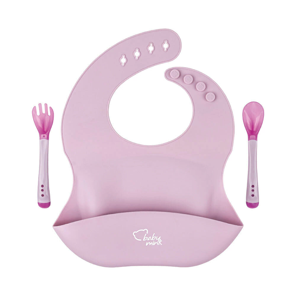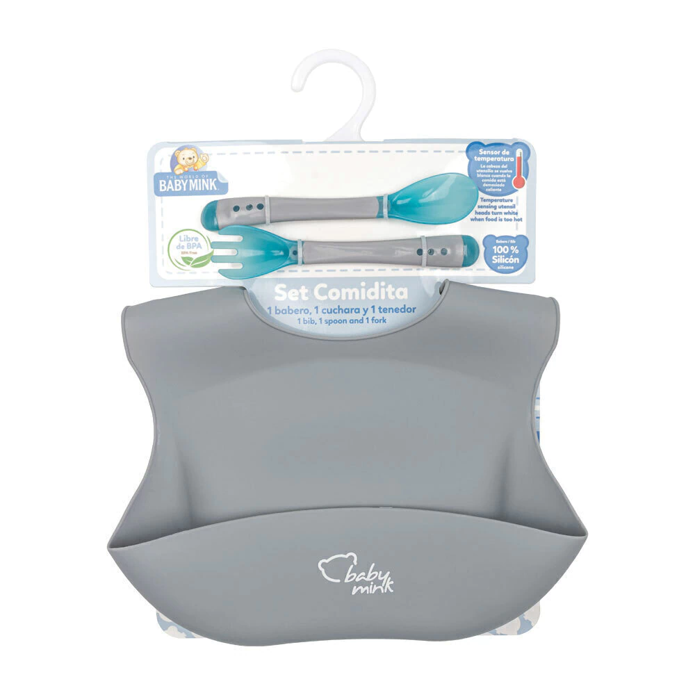 Haz que la hora de la comida sea más segura y práctica con este set de alimentación para bebé que incluye un babero de silicón impermeable y cubiertos con sensor de temperatura. El babero para bebé, fabricado en 100% silicón, cuenta con un broche ajustable que evita molestias en el cuello del pequeño y una bolsa amplia para migajas y líquidos, ideal para reducir derrames. Es un babero impermeable y enrollable, perfecto para llevar a todas partes y fácil de limpiar. Además, incluye un par de cucharas para bebé o cubiertos para bebé que detectan si la comida está demasiado caliente, volviéndose de color blanco protegiendo a tu hijo de quemaduras.