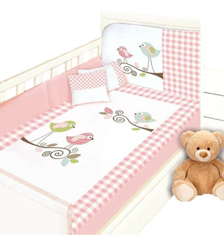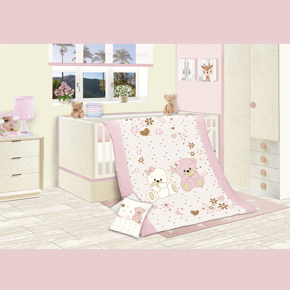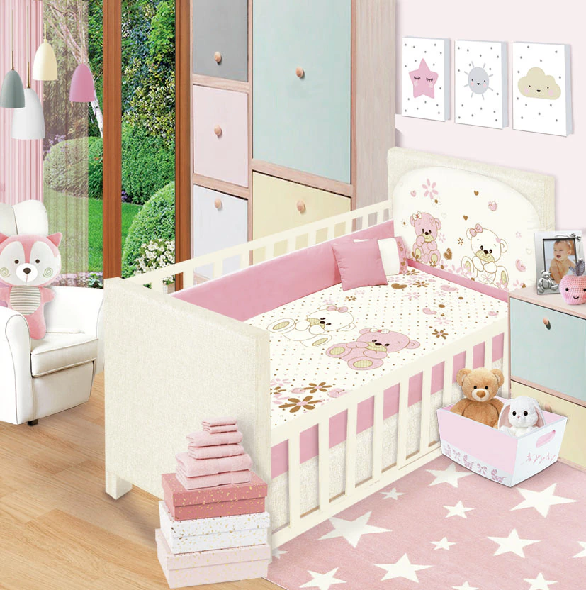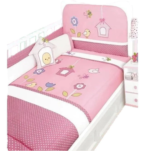 Está confeccionado con una composición de 50% algodón y 50% poliéster, garantizando suavidad y durabilidad. Las fundas de almohadas incluidas complementan el set, permitiendo una decoración completa y armoniosa en la habitación. Con un largo de 160 cm y ancho de 105 cm, se adapta perfectamente a las necesidades de tu bebé. Recomendaciones de lavado y cuidado: Usar poco detergente, No usar secadora, No centrifugar, No usar plancha, No usar cloro, Ciclo delicado.