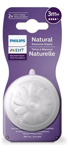 La tetina Philips Avent Natural Response permite que el bebé controle el ritmo de la leche, como lo hacen cuando amamantan; la apertura y la punta únicas de las tetinas solo liberan leche cuando su bebé bebe activamente, cuando hace una pausa para tragar y respirar, no sale leche.